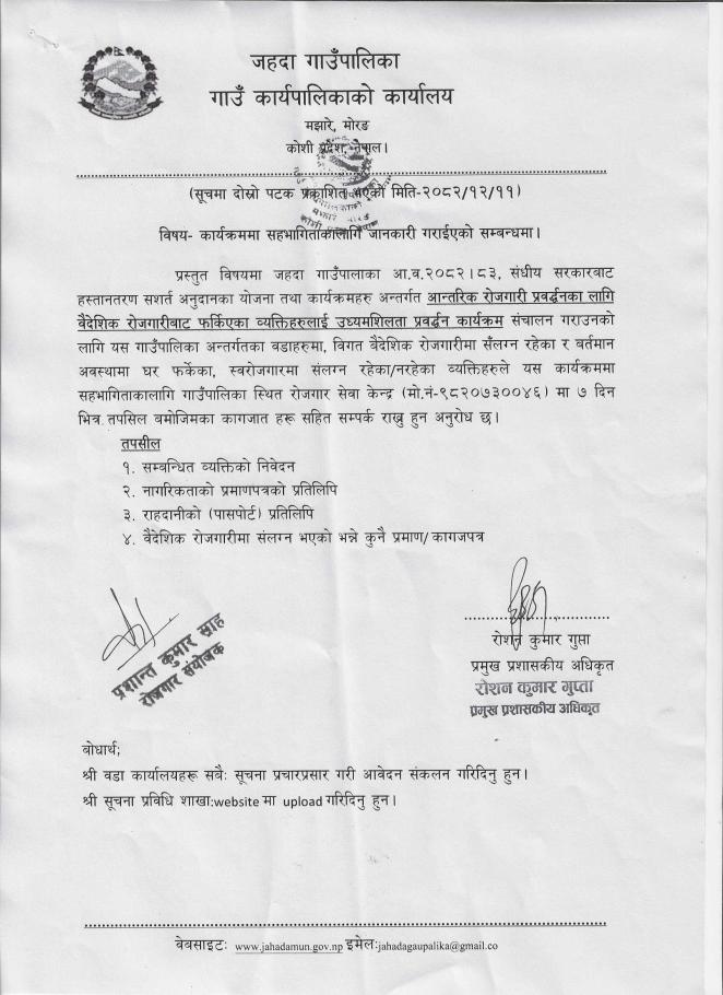 कार्यक्रम सहभागीता सम्बनधमा ।