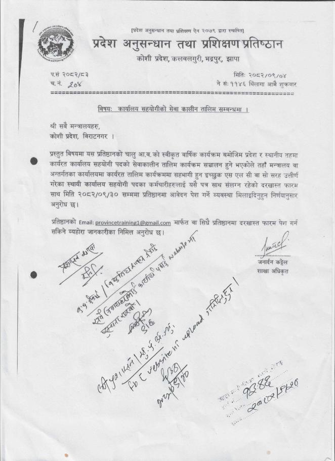 कार्यालय सहयोगीको सेवाकालीन तालीम सम्बन्धमा ।