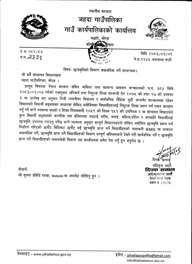 » छात्रवृतिको विवरण अध्यावधिक गर्ने सम्बन्धमा ।