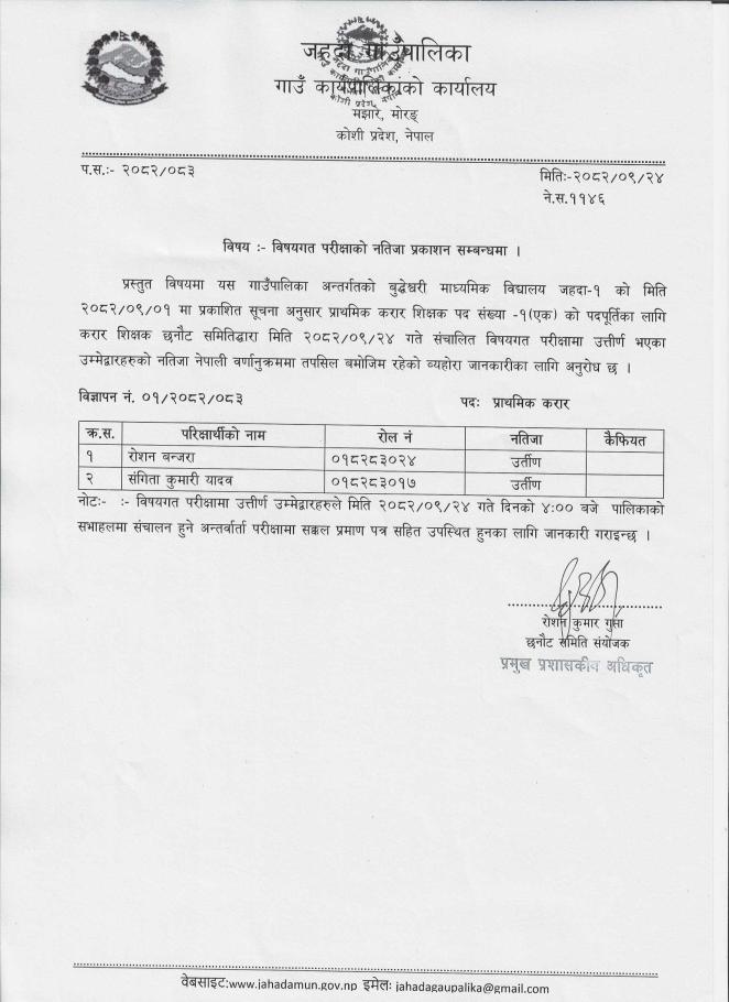 परीक्षा नतिजा सम्बन्धमा ।