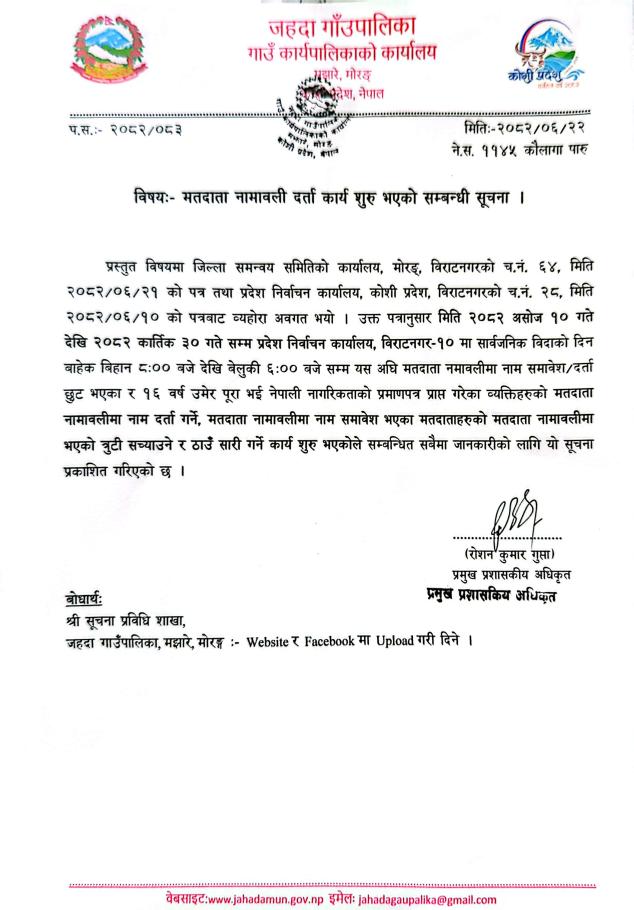 मतदाता नामावाली दर्ता कर्या सुरू भएकाे सम्वन्धी सूचना