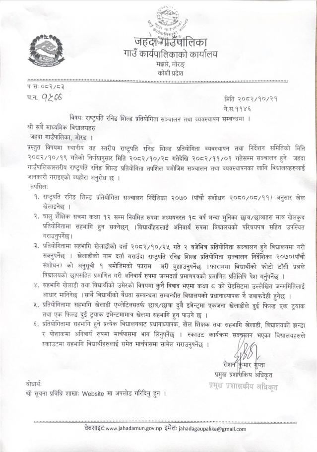 राष्ट्रपति रनिङ्ग सिल्ड सम्बन्धमा ।