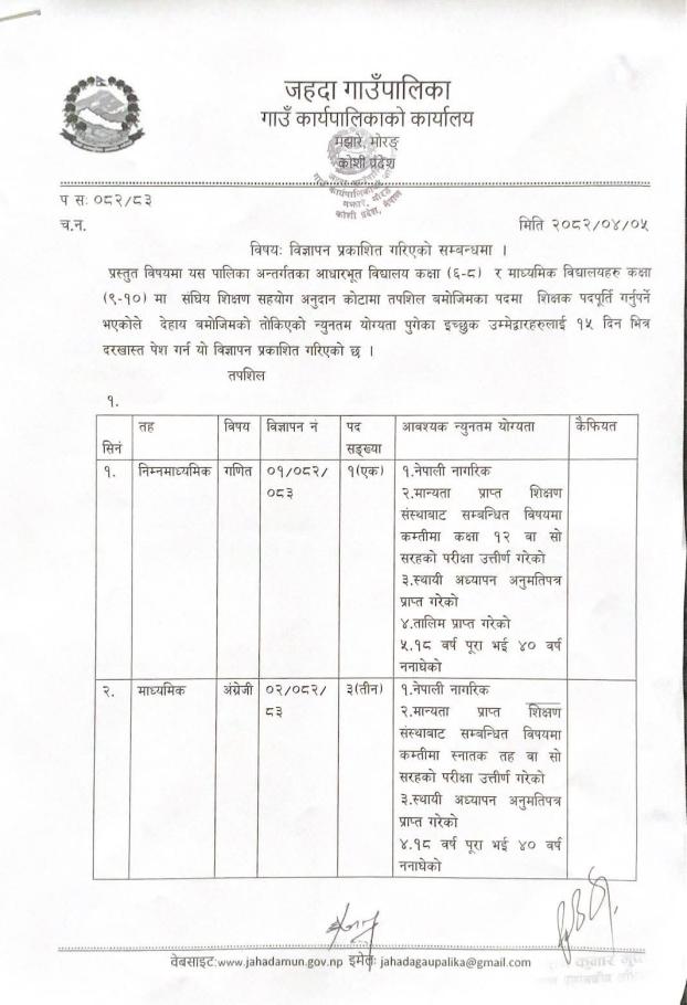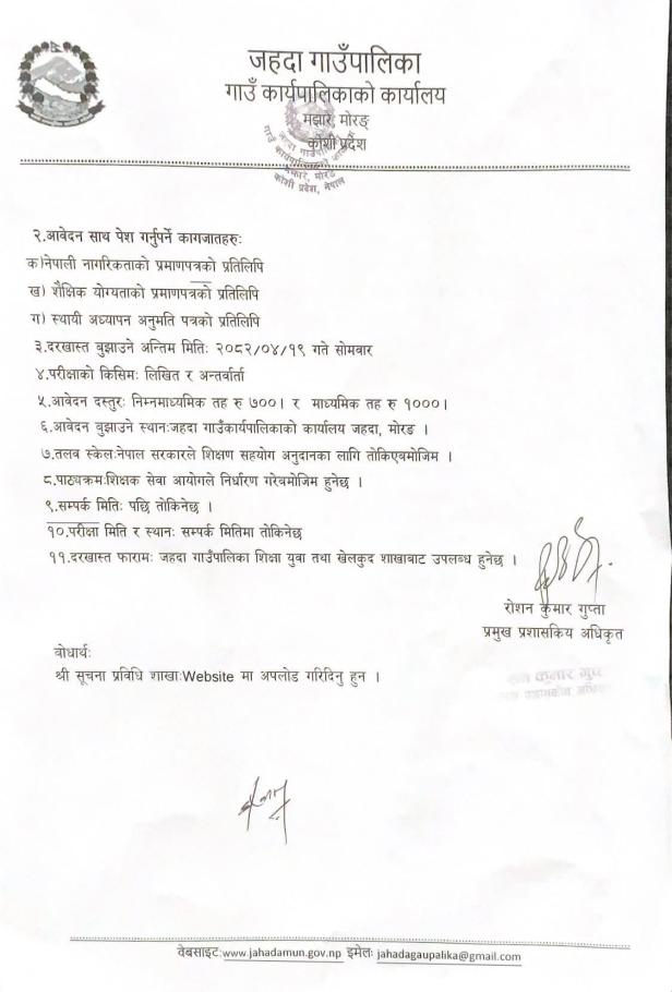 विज्ञापन प्रकाशित गरिएको बारे सुचना