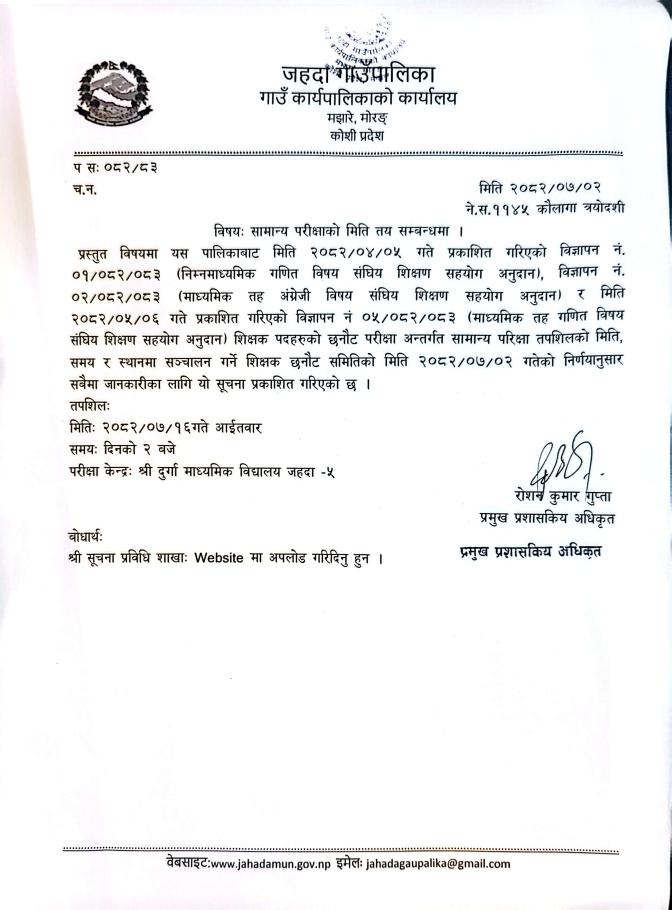 सामान्य परीक्षाको मिति तय सम्बन्धमा