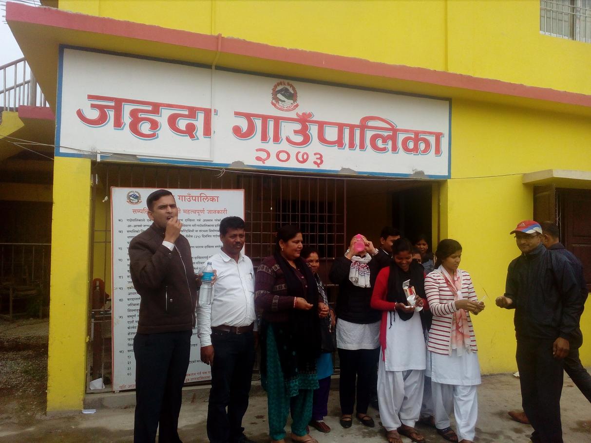 आज मिती २०७५-११-१३ गते यसै जहदा गा. पा. का प्रमुख प्रशासकिय अधीकृत , लेखा अधिकृत र स्वास्थय संयोजक बाट हात्ति पाईलेरोग विरुद्धको औषधी खाई उदघाटन गरियो
