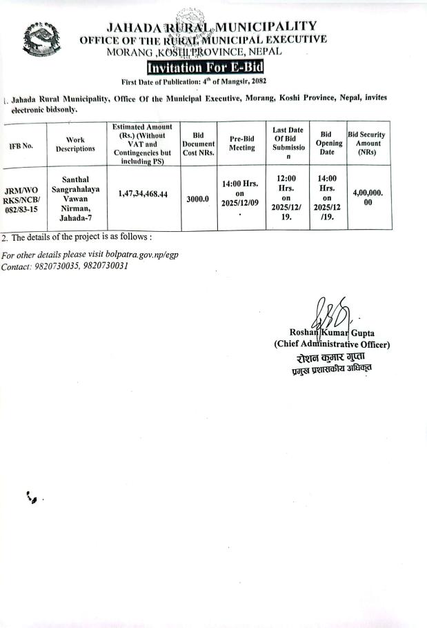 ,, बोलपत्र आह्वान गरिएको बारे सुचना