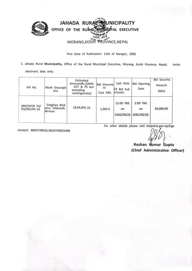 बोलपत्र आह्वान गरिएको बारे सुचना
