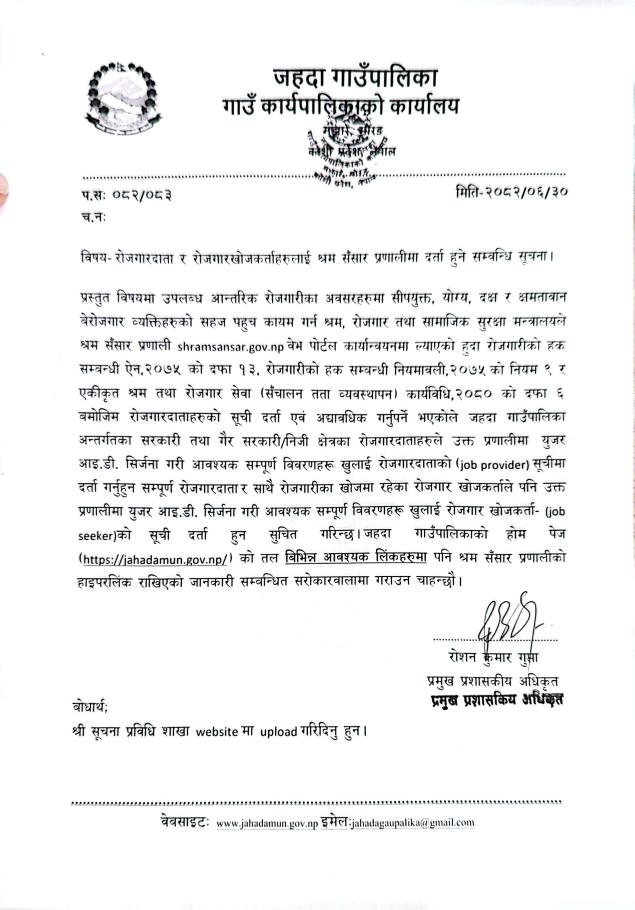 रोजगारदाता र रोजगर खोज कर्ता हरुलाई श्रम संसार प्रणालीमा दर्ता हुने सम्बन्धमा