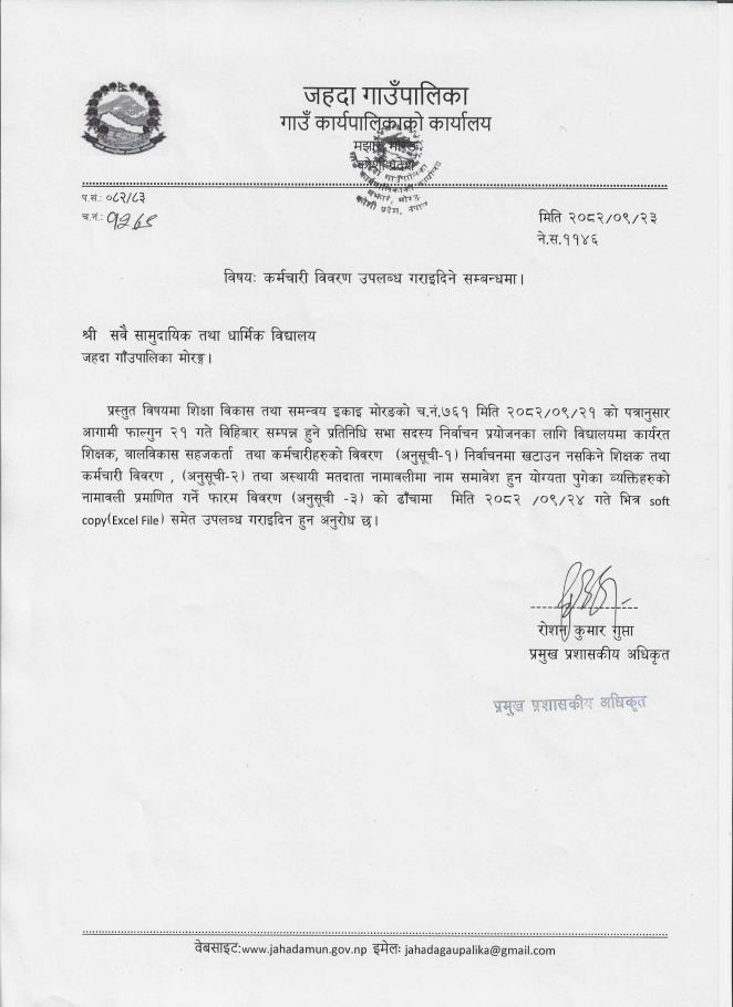 विवरण उपल्बध गराई दिने सम्बन्धमा ।
